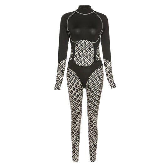 2021 Casual Tracksuits Women Sexy Contrast Color One Piece Overalls Patchwork Long Sleeve Zipper Slim Jumpsuits Autumn