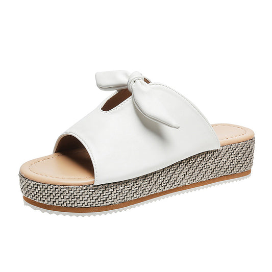 Peep Toe Sandals Bow Platform Mid Heels Slippers Outdoor Slides Shoes