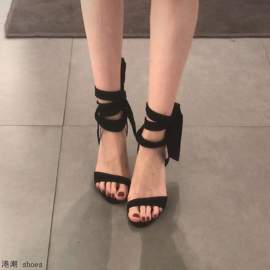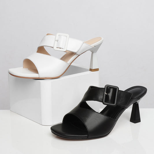 Sandals High Heels Women Korean Style Fish Mouth Square Buckle Slippers