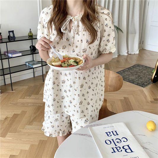 Women Sweet Lace Floral Short Sleeve Pajamas