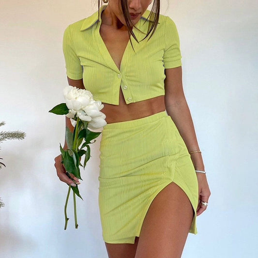 Fashionable Sexy Cropped Short-Sleeve Skirt