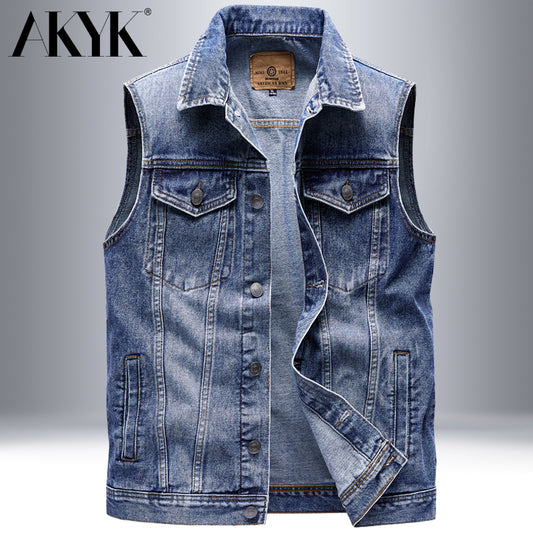 Akyk Spring and Autumn Denim Vest Man Vest Lapel Loose Oversized Waistcoat Casual Multi-Pocket Workwear Vest for Men