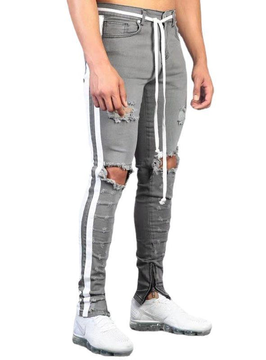 Over the Knee Men Super Skinny Hip Hop Slim Jeans