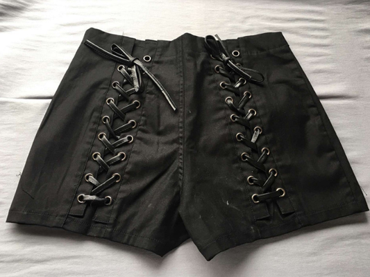 Women Solid Shorts Criss Cross Bandage REGULAR High Waist Black Short