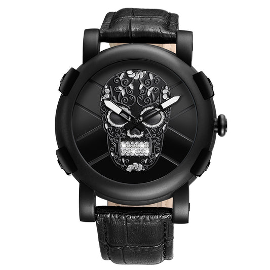SKONE Pirate Skeleton Skull Quartz Men Watches Luxury Waterproof Leather Men Sports Watch