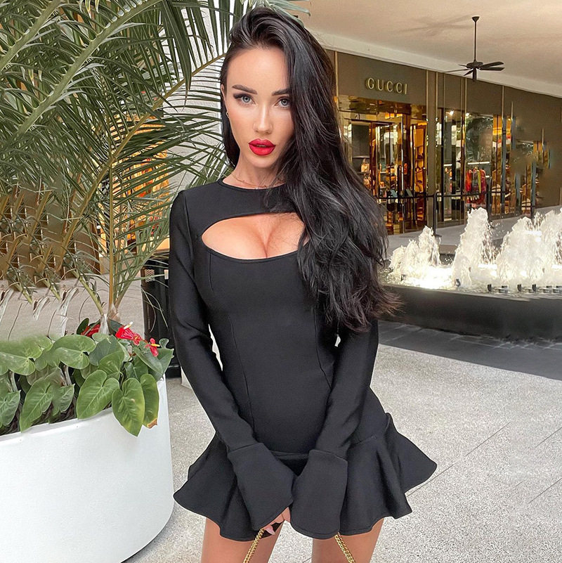 Ahagaga Western Style Sexy Hollow out Chest Emphasizing Type a Flounced Skirt High Waist Short Long Legs Sheath Skirt