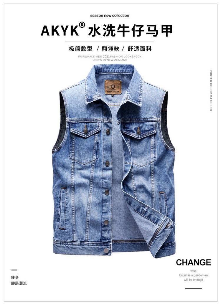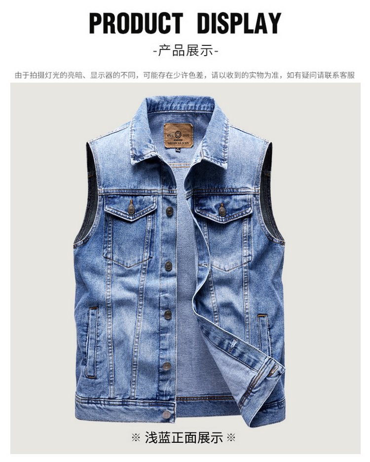 Akyk Spring and Autumn Denim Vest Man Vest Lapel Loose Oversized Waistcoat Casual Multi-Pocket Workwear Vest for Men