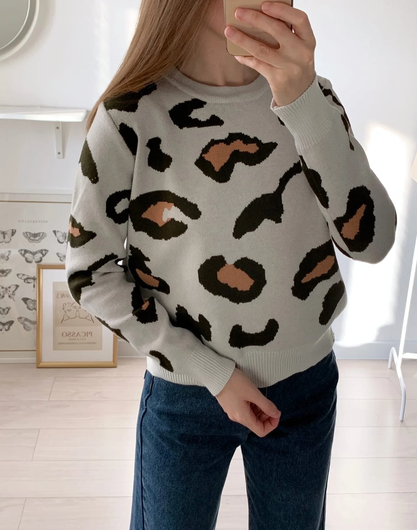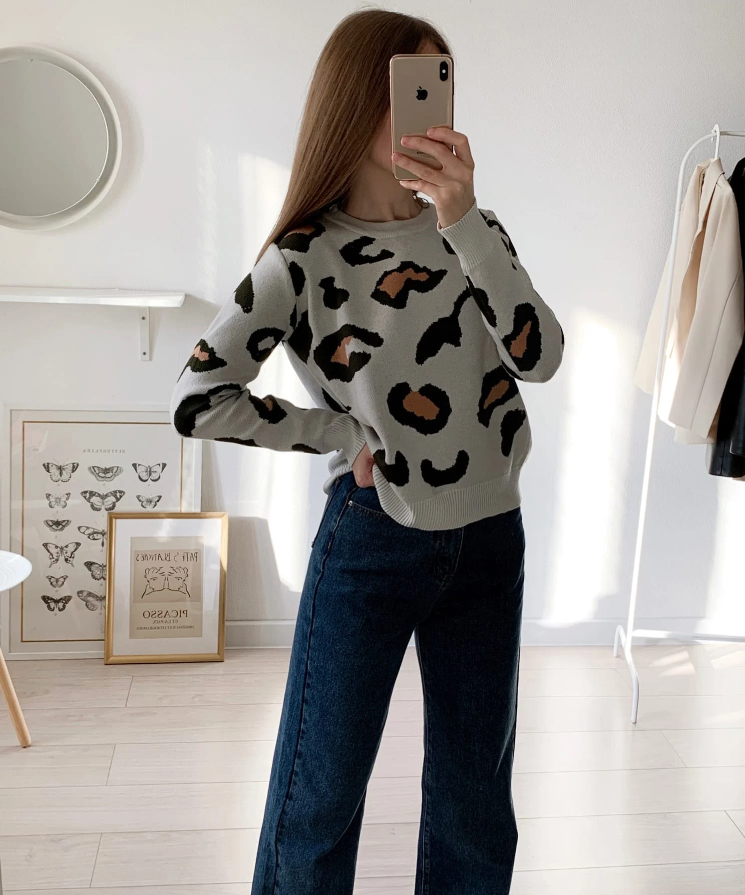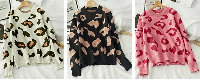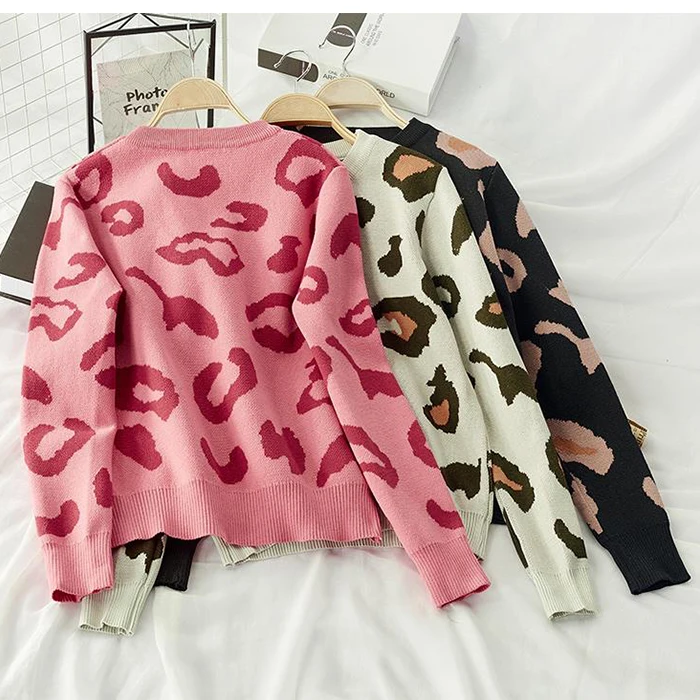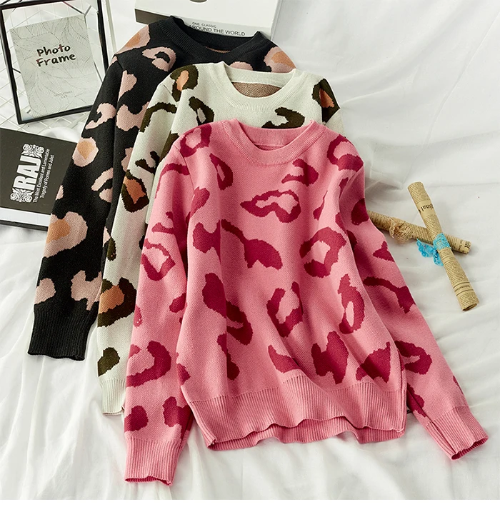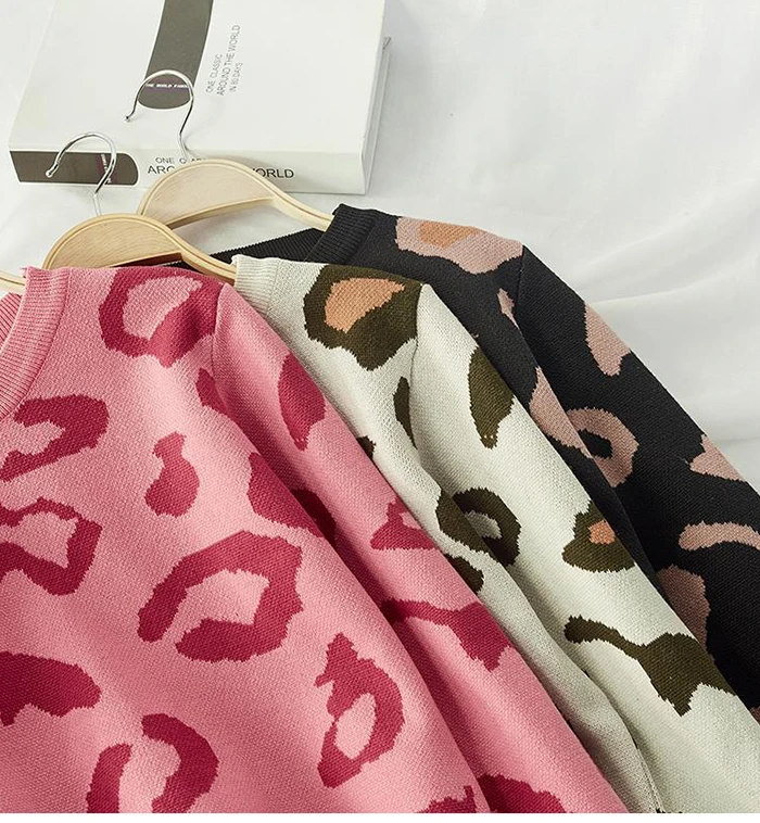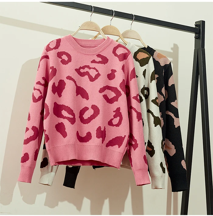 Beautiful Pink Leopard Short Pullover and Sweater Women 2020 Fall Winter Korean Elastic Knitted Jumper Female Knitwear