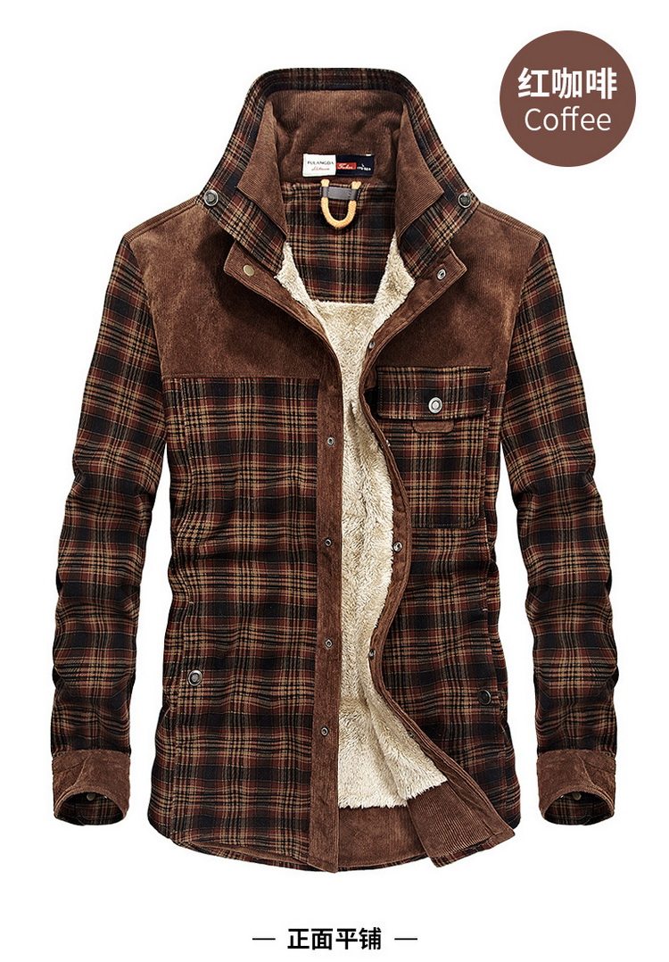 Heavy Fleece Thickened Blouse Men's Long-Sleeved Plaid Loose plus Size Shirt Stitching Winter Daddy Clothes Thermal Shirt