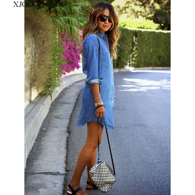 Long Sleeve Loose Mid Length Denim Shirt Long Sleeve Loose Long Denim Shirt