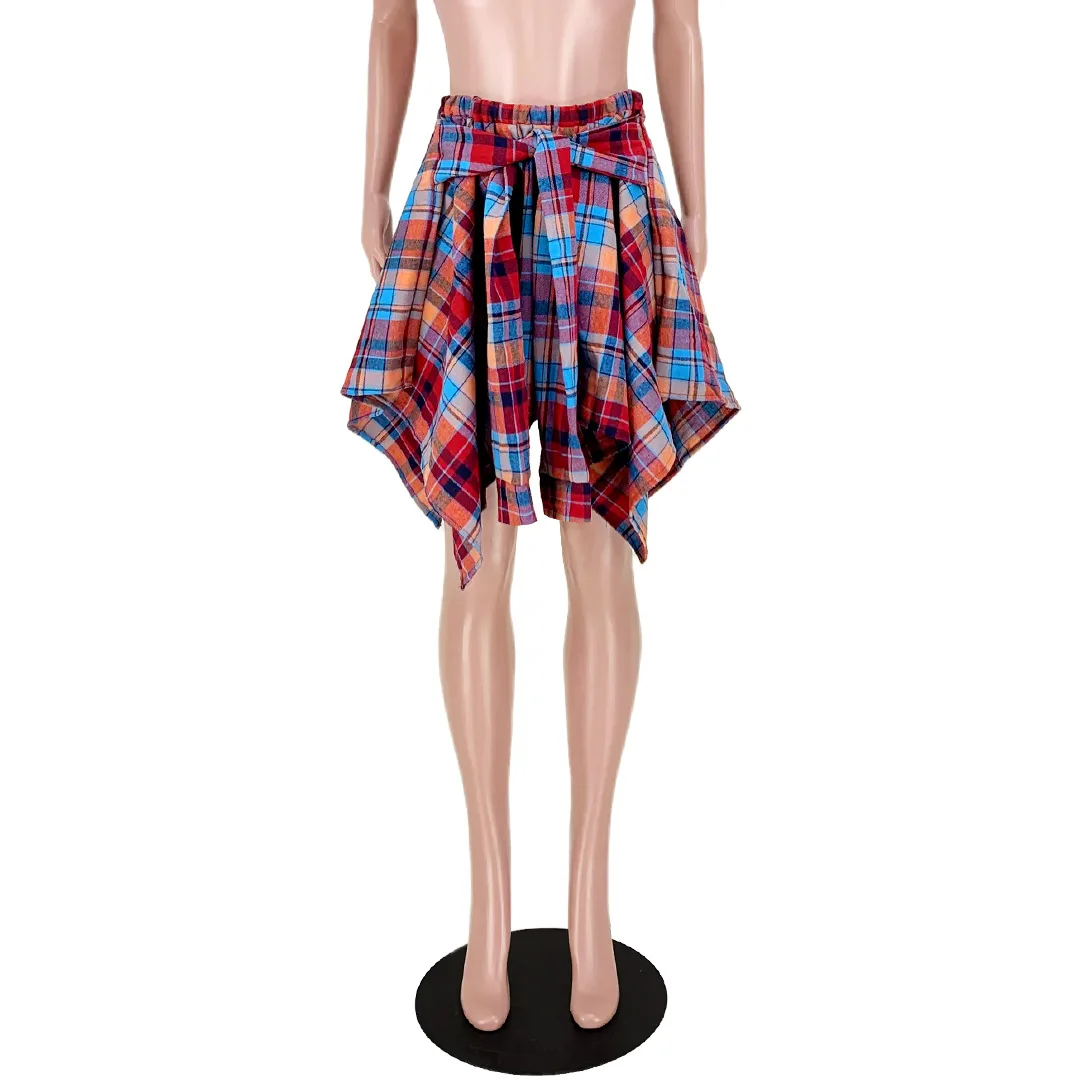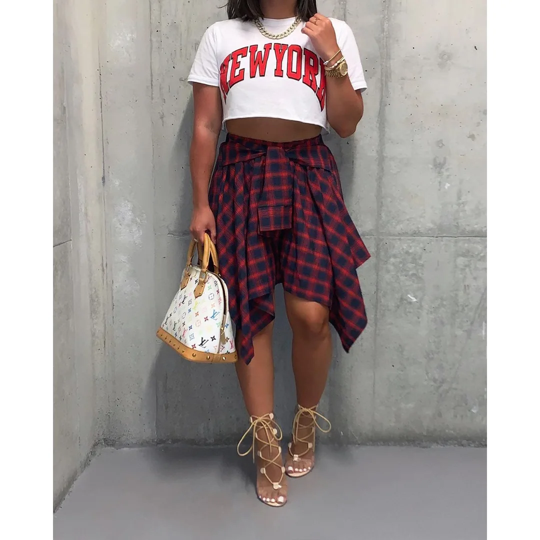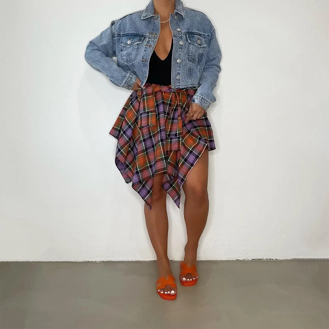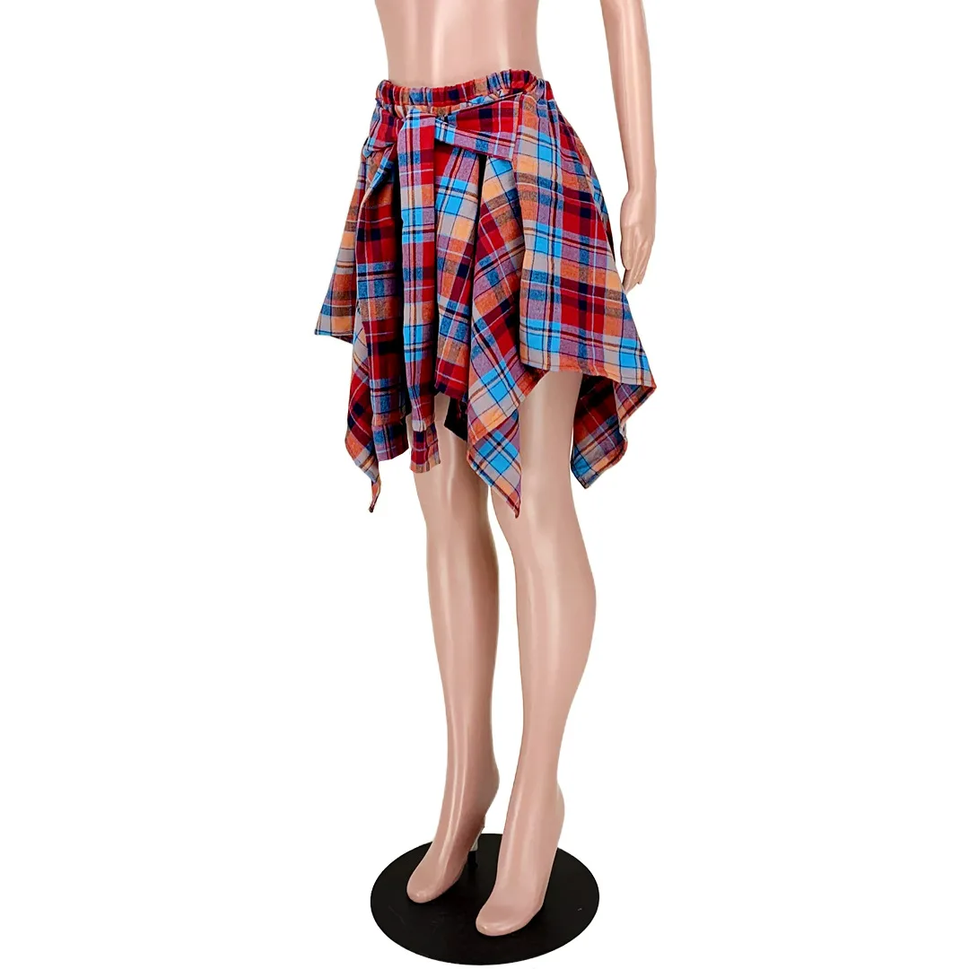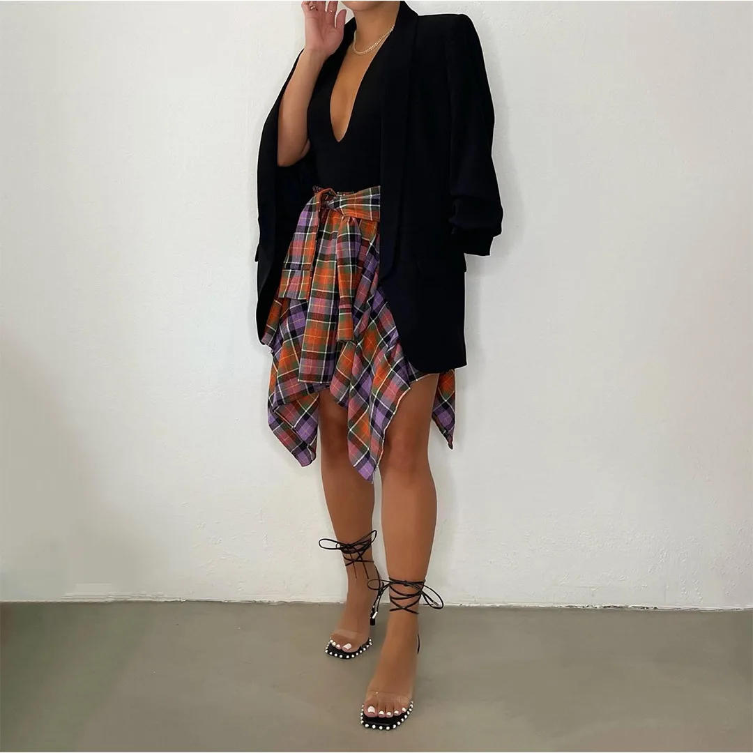 Plaid Checkered Tie Dye Patchwork Pleated Skirt Women Vintage High Waist Ruched Maxi Skirt Summer Female Floor Length Skirts