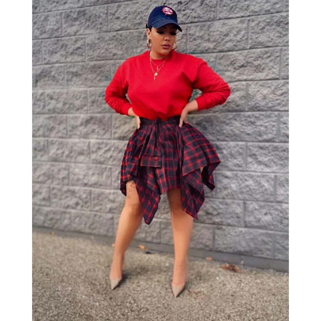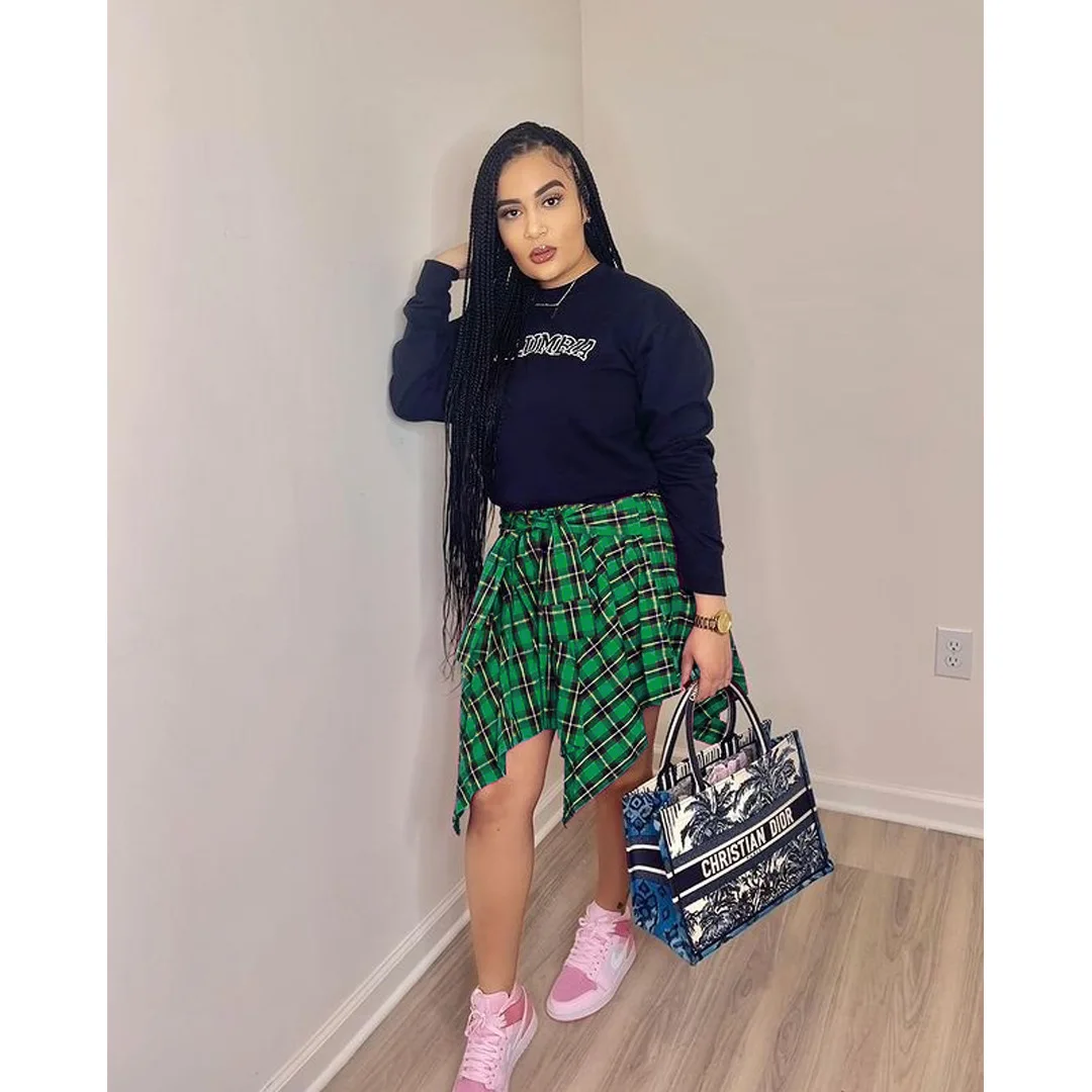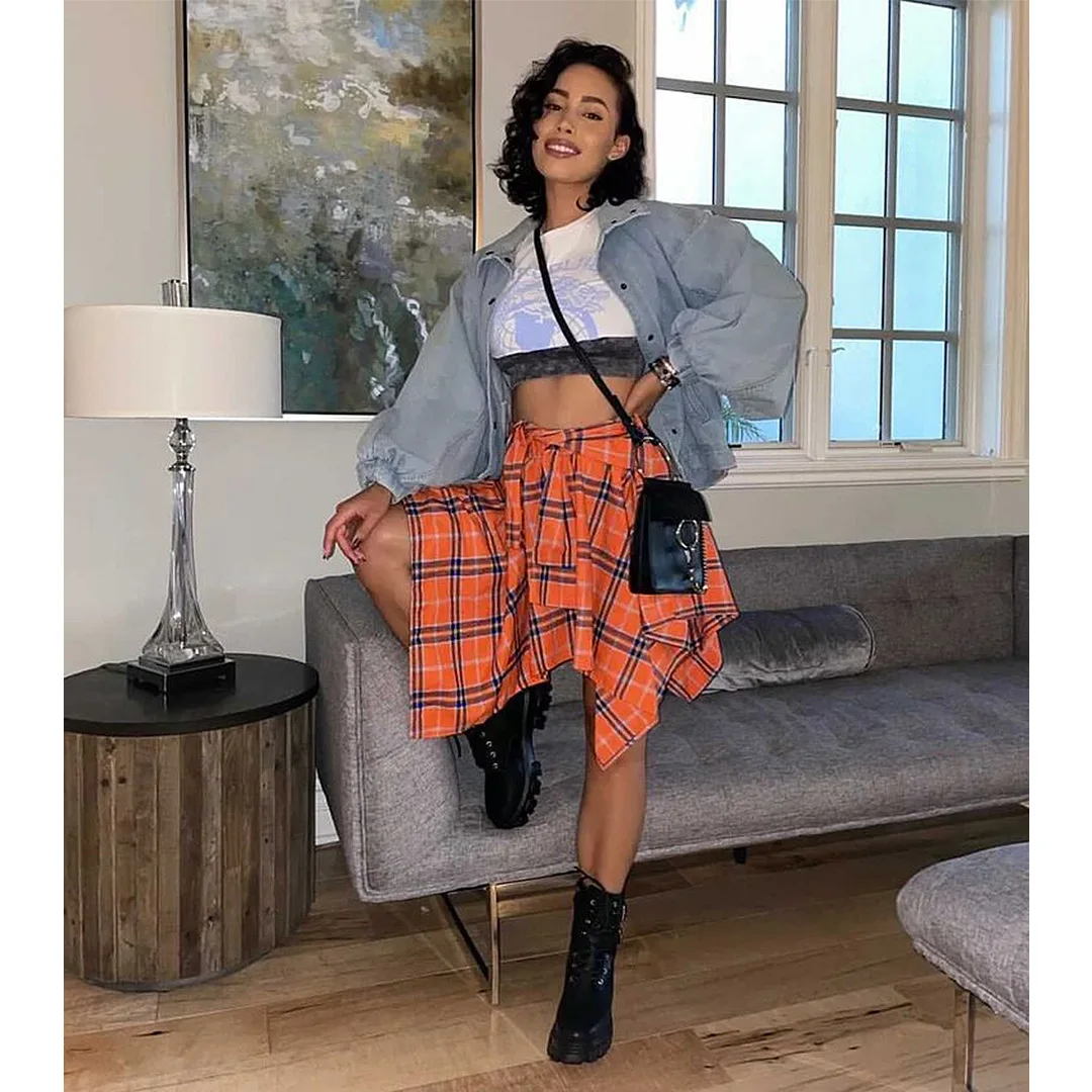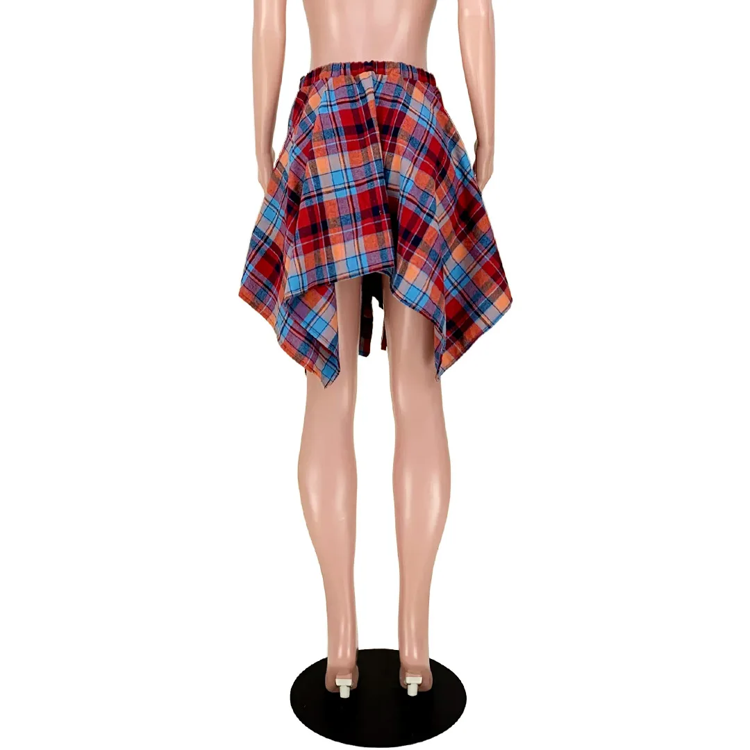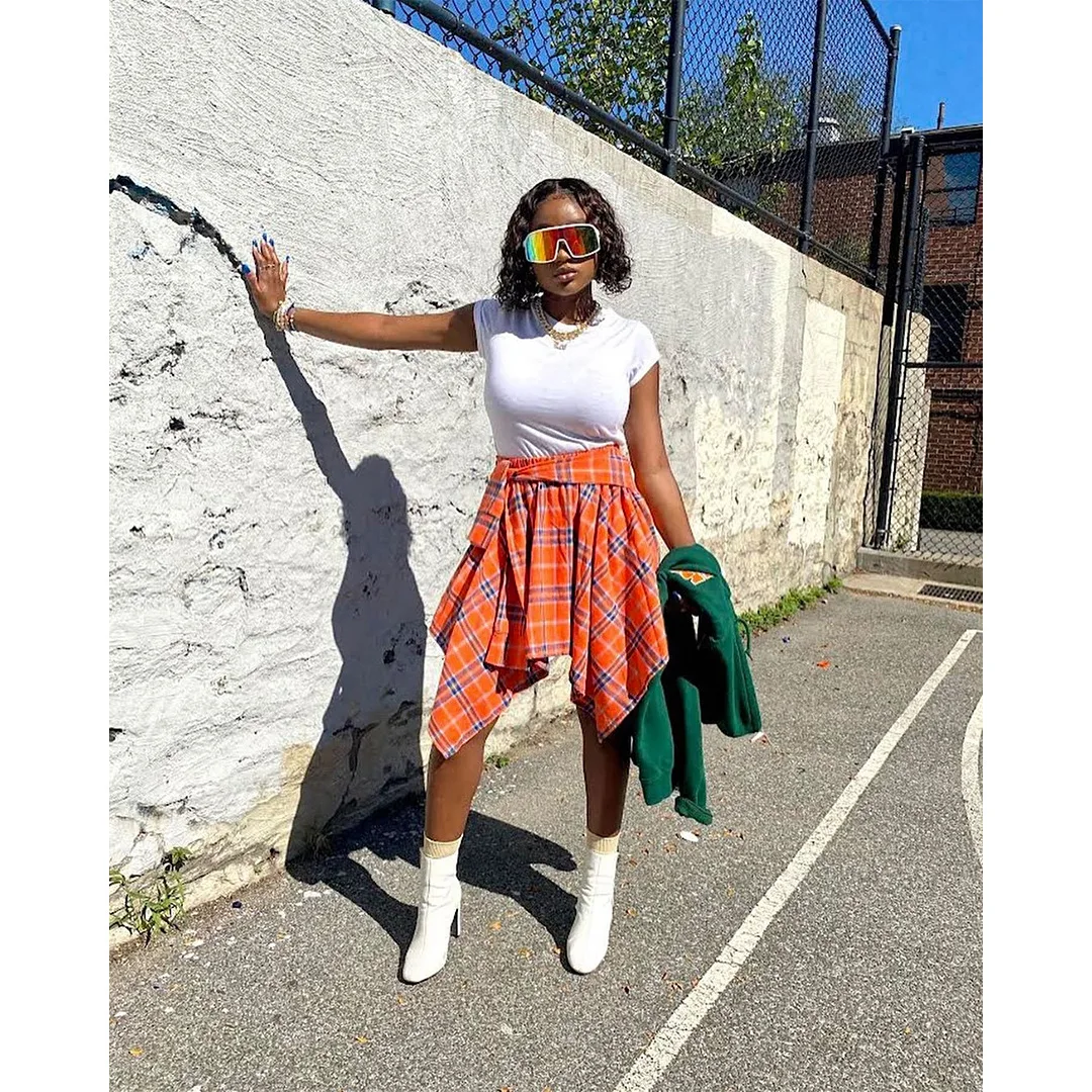 Plaid Checkered Tie Dye Patchwork Pleated Skirt Women Vintage High Waist Ruched Maxi Skirt Summer Female Floor Length Skirts