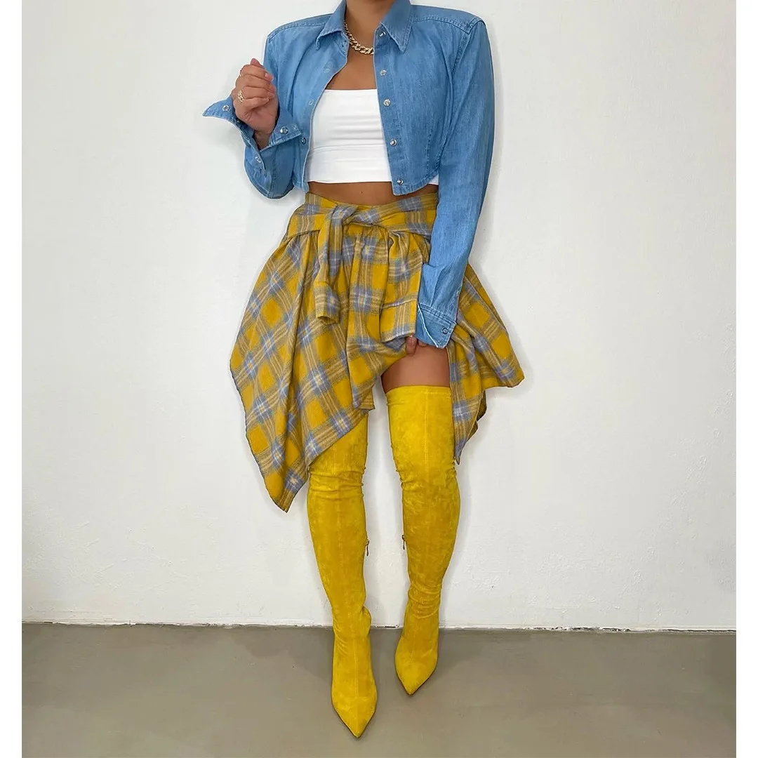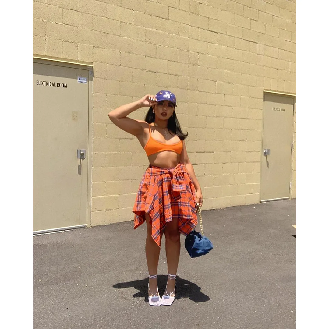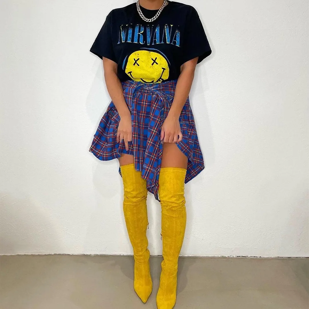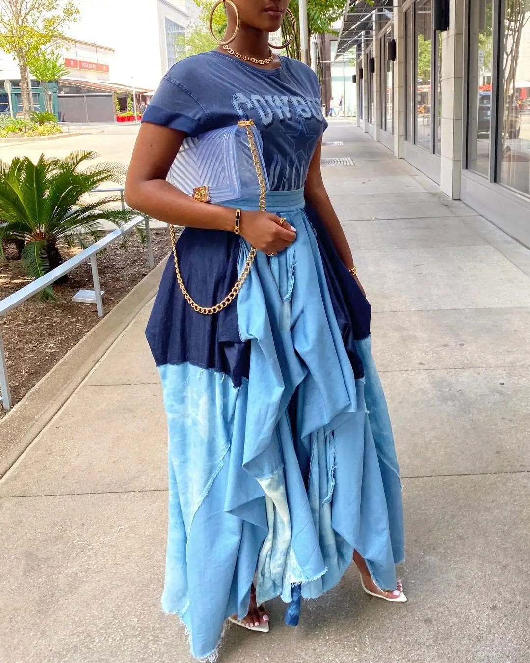 Plaid Checkered Tie Dye Patchwork Pleated Skirt Women Vintage High Waist Ruched Maxi Skirt Summer Female Floor Length Skirts