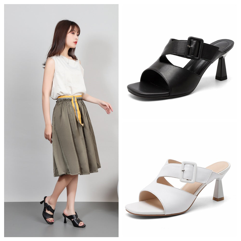 Sandals High Heels Women Korean Style Fish Mouth Square Buckle Slippers