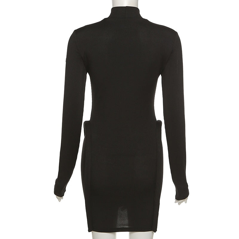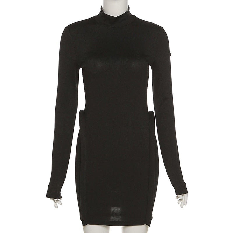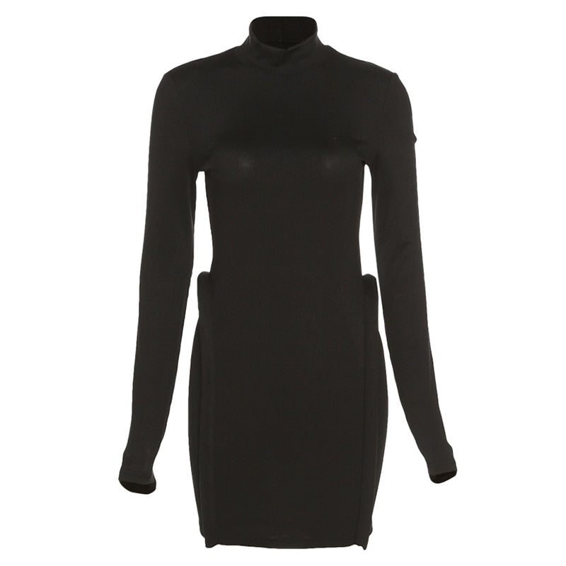 Three-Dimensional Decoration Bodycon Long Sleeve Turtleneck Streetwear Knitted Stitching Mini Dress Women Hipster Skinny